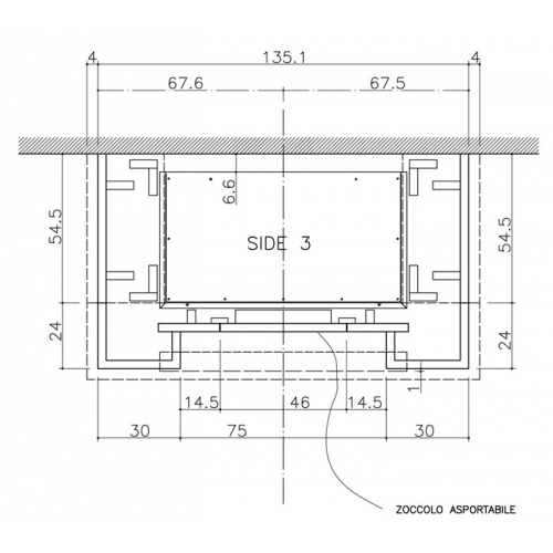 Пристенная облицовка, возможна также версия, укомплектованная банкеткой. Плита, боковые детали и цоколь из натурального камня vicenza, балка и фронтальная деталь деревянные.