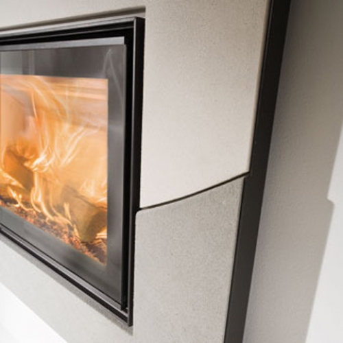 Итальянские дизайнеры разделили облицовку этого встроенного камина Smile надвое. Нижняя ее часть выполнена из натурального камня темного оттенка, тогда как верхняя, отделана темным и довольно контрастным материалом. В подобном обрамлении Ваш домашний очаг будет не только согревать Вас своим теплом, но и радовать всех окружающих своим дизайном.