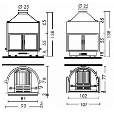 - Поперечное сечение отверстия выхода дыма - диаметр 250
