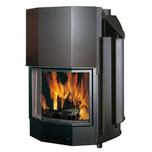 Топка с водяным контуром из толстой стали, способная производить горячую воду, поступающую в контур системы отопления и на радиаторы, а также производить горячую техническую воду. Дверца призматической формы с подъемом вверх. Камин может устанавливаться как пристенный или как фронтальный.