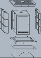 Печь-камин Akropolis пристенный (топка со складными дверцами)