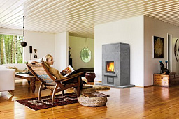 Красивый современный внешний вид модели Fidus 1 дополняется превосходными качественными, эксплуатационными и отопительными характеристиками. При тепловой мощности 35-41 кВт в час печь-камин достигает КПД в 88%. Во многом такие показатели достигаются благодаря талькохлориту, из которого сделана облицовка: этот камень обладает высочайшими показателями теплоаккумуляции, термостойкости, равномерной отдачи тепла в помещение в течение многих часов после окончания горения дров.