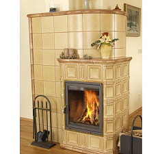 Поворотная колосниковая решетка, теплонакопительный блок, выдвижной зольник и фриз из талькохлорита.
