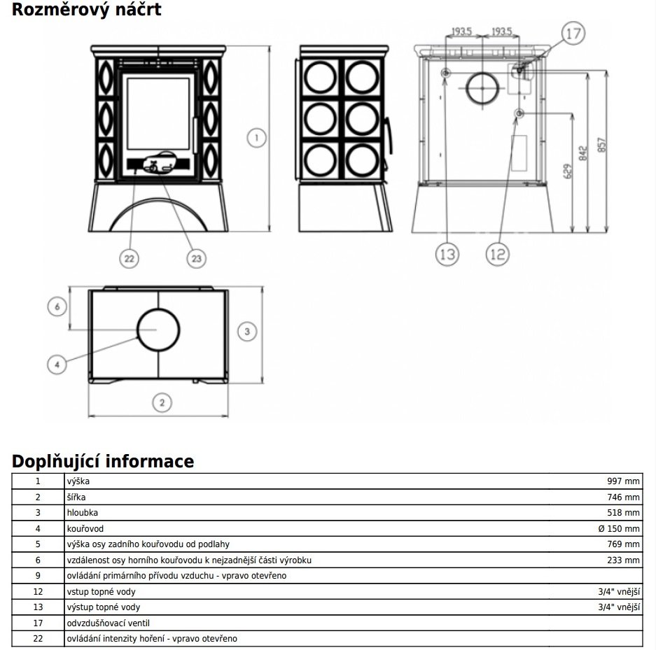 - Диаметр дымохода, (мм) 150